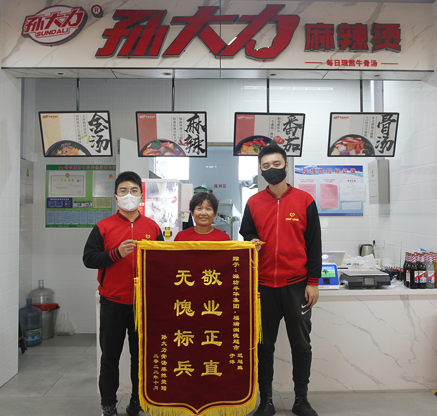 一心一意做服務(wù),細(xì)節(jié)之中見初心。10月27日,二樓商戶孫大力骨湯麻辣燙老板手指受傷無法到店,僅剩兩位老人在店經(jīng)營,因年紀(jì)大不會使用收銀系統(tǒng),無法收款。于洋和遲超鵬得知該情況后主動(dòng)擔(dān)當(dāng)每天中午幫商戶收款,使其能夠正常經(jīng)營。11月2日,二樓商戶孫大力骨湯麻辣燙為Free Land送來了錦旗。一是對此事表示感謝,二是對Free Land主動(dòng)幫助商戶送餐、充電充水、有問題及時(shí)對接解決等日常服務(wù)工作表示肯定。截至發(fā)稿日期,F(xiàn)ree Land仍在堅(jiān)持每日中午幫助該業(yè)戶收款,真正將全心全意服務(wù)的宗旨和初心做到了實(shí)處。
